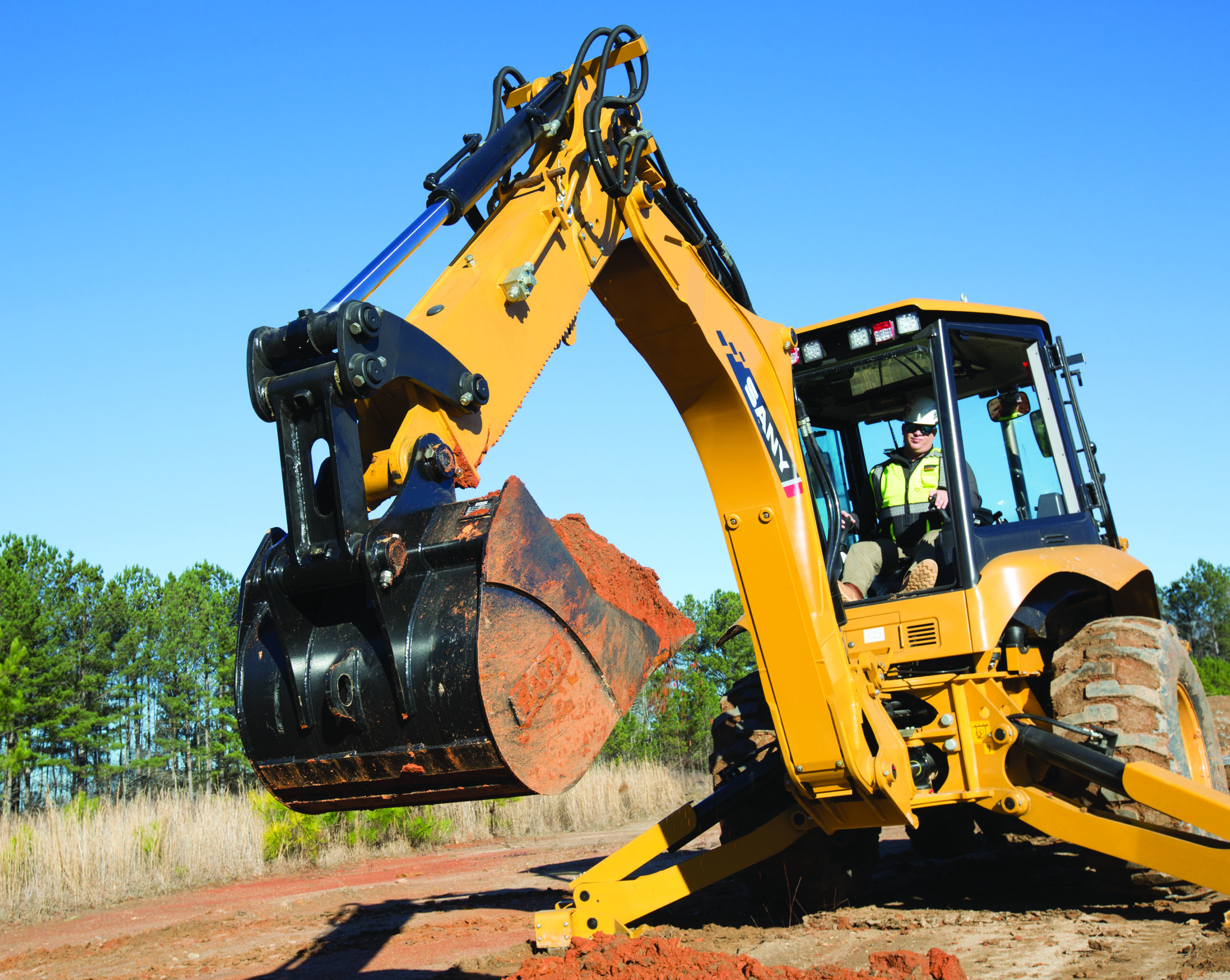 The SANY BHL95 backhoe loader is a versatile, high-performance machine engineered for American contractors, utility crews, municipalities and rental fleets that need one reliable unit to handle digging, trenching, loading, backfilling and material handling across diverse jobsites. Equipped with a factory-installed telescopic extendable stick, it provides exceptional reach—digging to a full 17.7 ft deep and extending nearly 22 ft from the swing pivot—allowing crews to trench deeper, place materials farther or work around obstacles without constantly repositioning the machine for greater efficiency and reduced cycle times. It comes fully job-ready out of the box with a hydraulic 4-in-1 multi-purpose loader bucket for clamping, grading and dozing, a standard heavy-duty backhoe bucket and both front and rear two-way auxiliary hydraulic lines to power attachments like breakers, augers, thumbs or grapples without the extra expense or hassle of aftermarket plumbing kits.