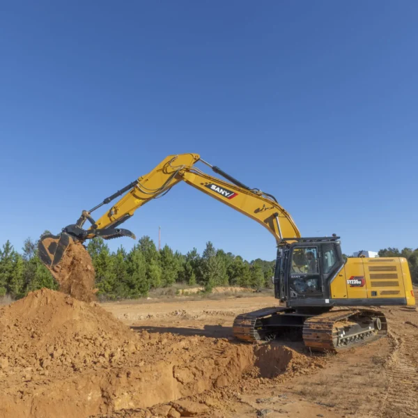 The SANY SY235C medium excavator delivers the power and durability you need for tackling demanding North American job sites with confidence. Powered by a reliable 163.6 hp Cummins QSB6.7 Tier 4 Final engine and SANY’s optimized positive flow hydraulic system, it provides exceptional digging performance, smooth and responsive controls, and up to 10% better fuel efficiency to help you get more done for less. Featuring a maximum digging depth of over 21 ft, high-flow auxiliary hydraulics up to 117 gpm, and a spacious, low-noise cab with superior visibility and comfort, the SY235H is built for all-day productivity in heavy excavation, trenching, and material handling applications. With rugged steel tracks, proven reliability, and SANY’s industry-leading warranty and support, it’s the high-value choice for contractors who demand maximum uptime without compromise.