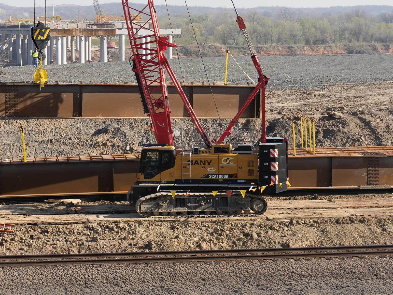 A reliable partner on the jobsite, the new SCA1000A crawler crane now has a stronger structure and upgraded inner workings to make operation easy and keep your crews safe. It delivers superior lifting performance with 110 USt lifting capacity at 12.5 feet and comes loaded with standard features to maximize your investment. This machine is very smooth from swing to travel to winch performance with enough pump flow to allow for multi-function operation. Retractable crawlers allow operators a smaller footprint when needed while still providing the required capacity. With standard free-fall winches, the SCA1000A is built for agile tough jobs like foundation work, bridge work, and steel erection.