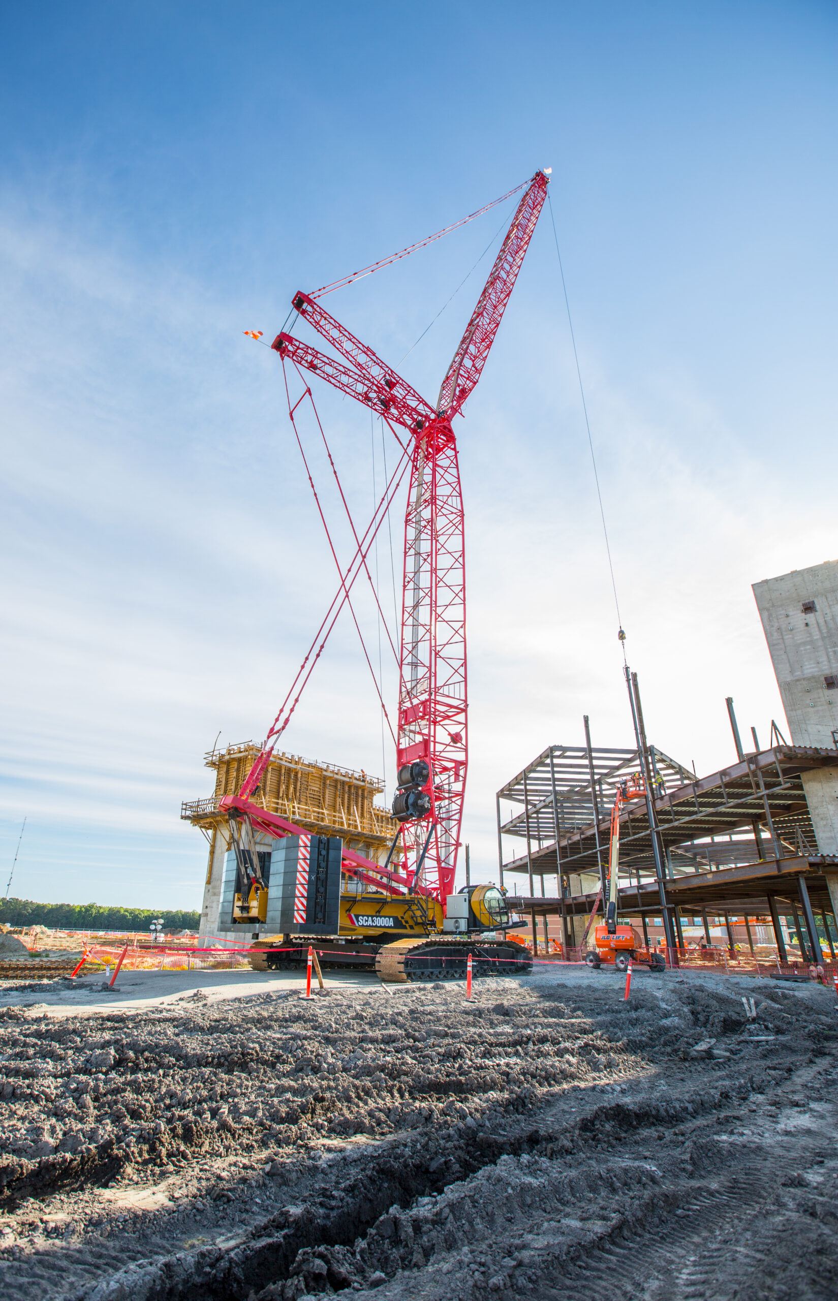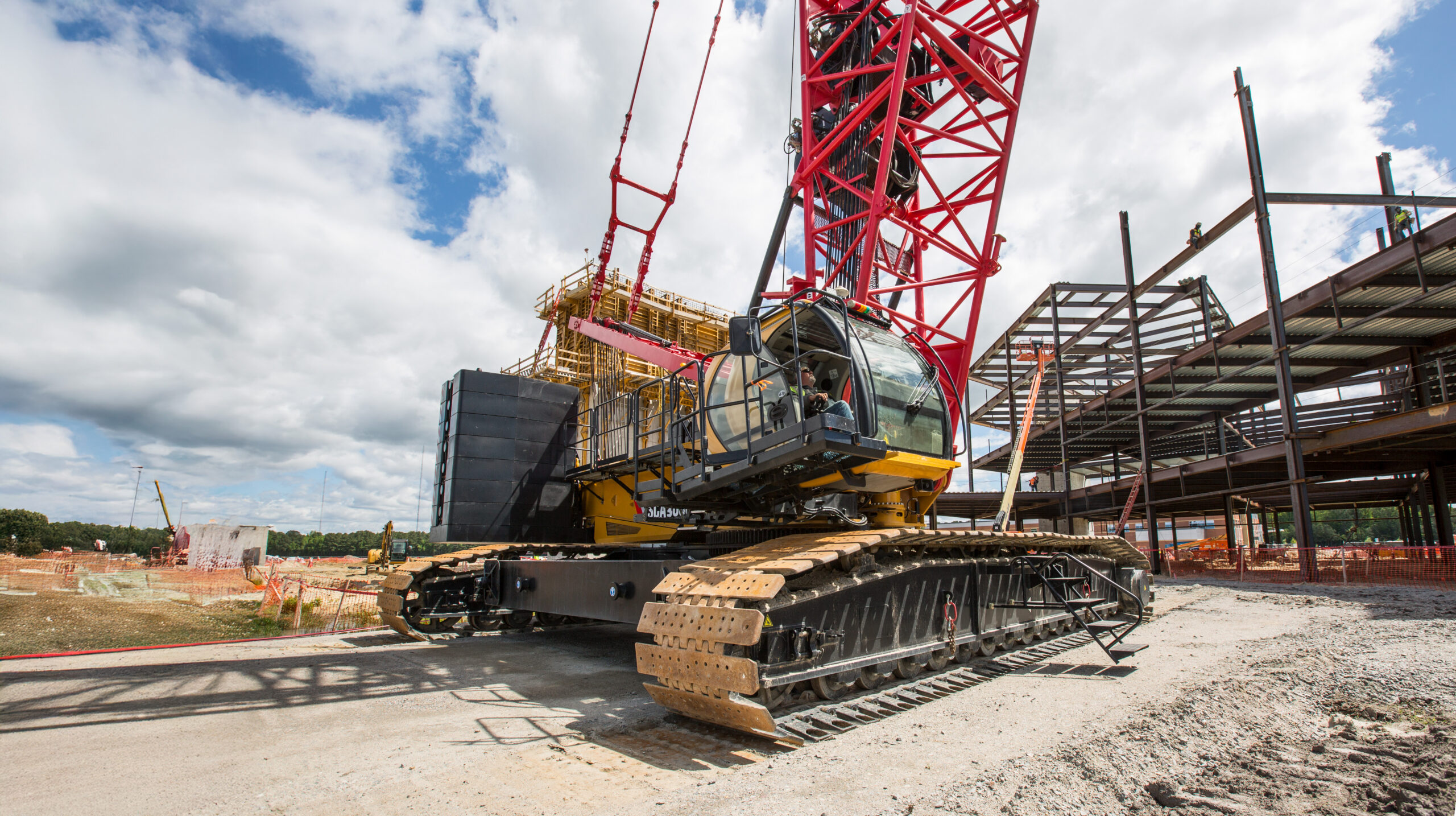 Built for durability on the jobsite, SANY’s SCA3000A crawler crane provides a lifting capacity of 300 USt at 16.4 feet. This heavy lifting champion picks precast concrete panels, general construction materials, and steel with ease. It was built with a large footprint to feel very solid and stable even at max radius with full luffing jib. With the new, spacious Porsche cab, the SCA3000A is all about operator comfort. Featuring ergonomics, class-leading A/C and heat, air-ride seats with seat interlock, and electric over hydraulic dual axis controls that are fully customizable to operator needs. The LMI with two, large touchscreens is impressive and provides more real-time information at the operator’s fingertips. The left screen displays function and status of controls, engine data, self-diagnostics and system pressures. The right screen displays working conditions such as ground bearing pressure, boom configuration, and swing angle.